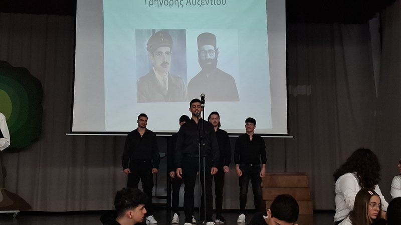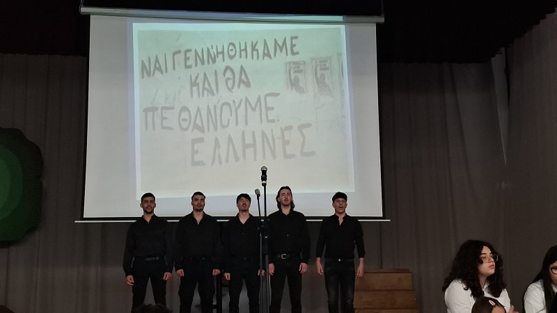 Στις 31 Μαρτίου 2026, στο Σχολείο μας έγινε εκδήλωση του αγώνα της 1ης Απριλίου 1955 – 1959. Με ένα καλλιτεχνικό πρόγραμμα διανθισμένο με ποιήματα, αφηγήσεις , δρώμενα, τραγούδια και χορούς οι μαθητές και οι μαθήτριες μας τίμησαν την επέτειο της έναρξης του απελευθερωτικού αγώνα της 1ης Απριλίου 1955 – 1959.