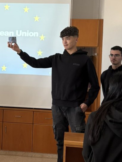The experience gained through the ERASMUS+ programme was unique. The process began with the identification of an idea, aiming to transform theory into practice. To implement this idea, a board game was created, which included a six-sided dice, with each side featuring a question directly related to the European Union. At the same time, flashcards were also created, with questions on the front and the corresponding answers on the back, likewise related to the European Union.