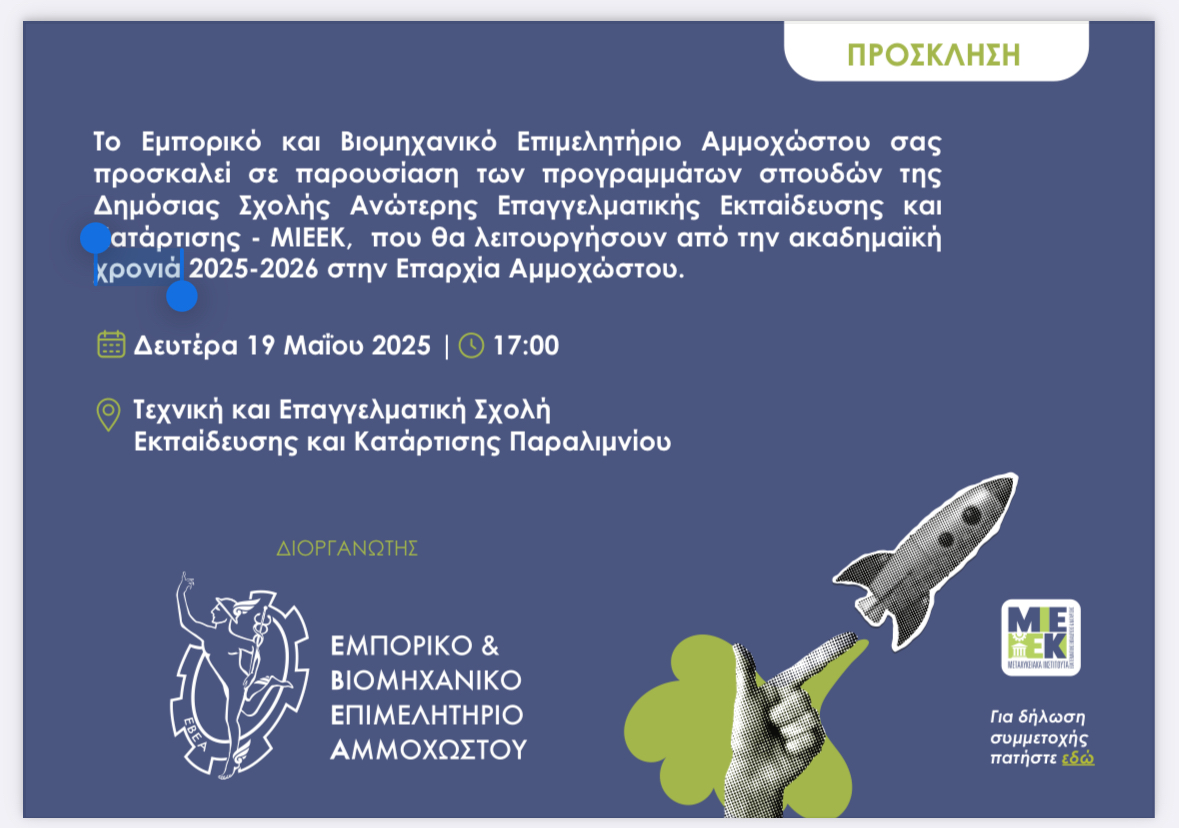 - Πρόσκληση από ΕΜΠΡΙΚΟ ΚΑΙ ΒΙΟΜΗΧΑΝΙΚΟ ΕΠΙΜΕΛΗΤΗΡΙΟ ΑΜΜΟΧΩΣΤΟΥ