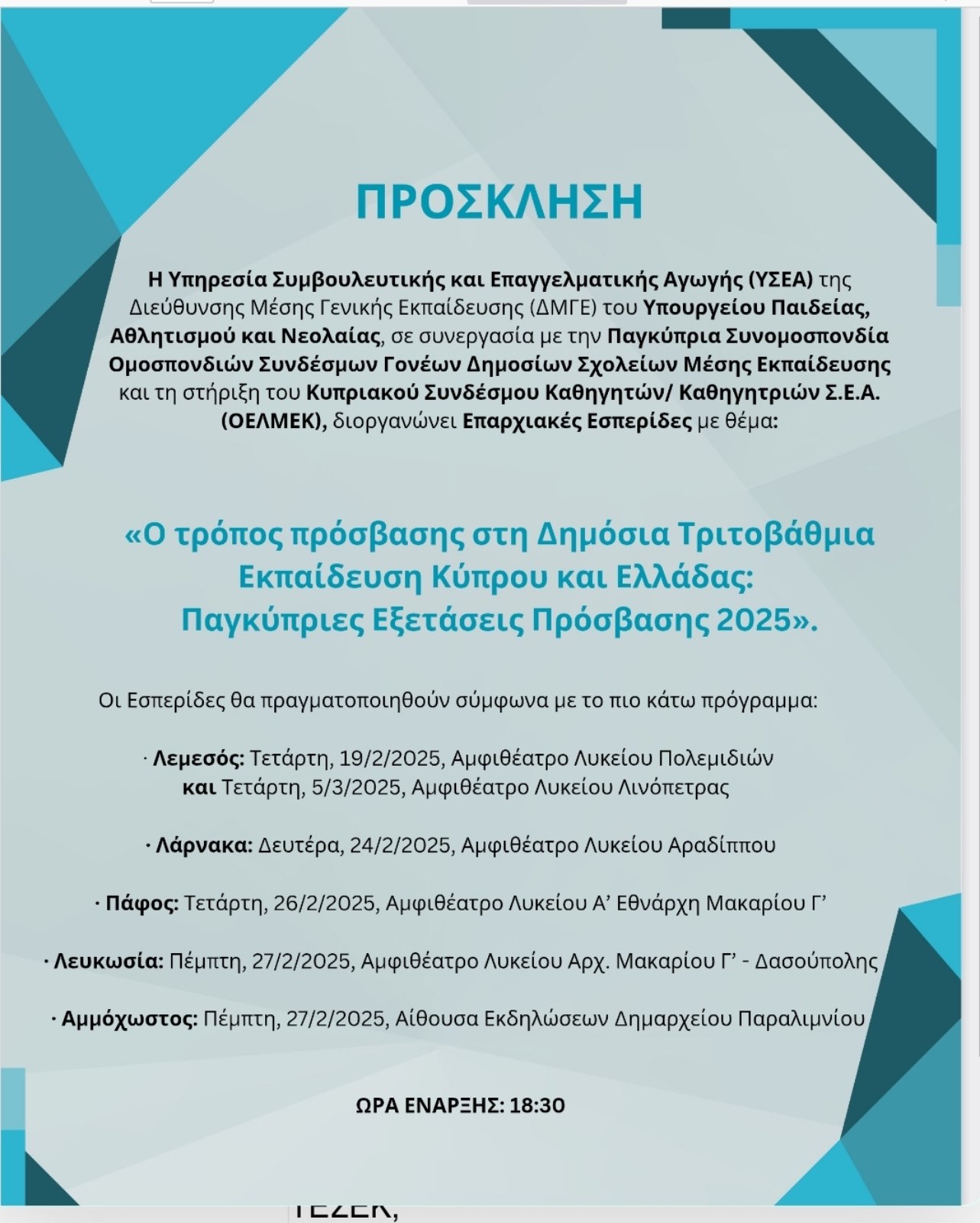 - ΔΙΑΔΙΚΑΣΙΑ ΠΡΟΣΒΑΣΗΣ ΣΤΗ ΔΗΜΟΣΙΑ ΤΡΙΤΟΒΑΘΜΙΑ ΕΚΠΑΙΔΕΥΣΗ ΚΥΠΡΟΥ ΚΑΙ ΕΛΛΑΔΑΣ 2025
