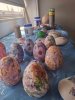 Χρησιμοποιήσαμε πλαστικά αυγά από παλιά παιχνίδια και εφαρμόσαμε τη μέθοδο decoupage, διακοσμώντας τα με χαρτοπετσέτες, χρώματα και φυσικά υλικά.