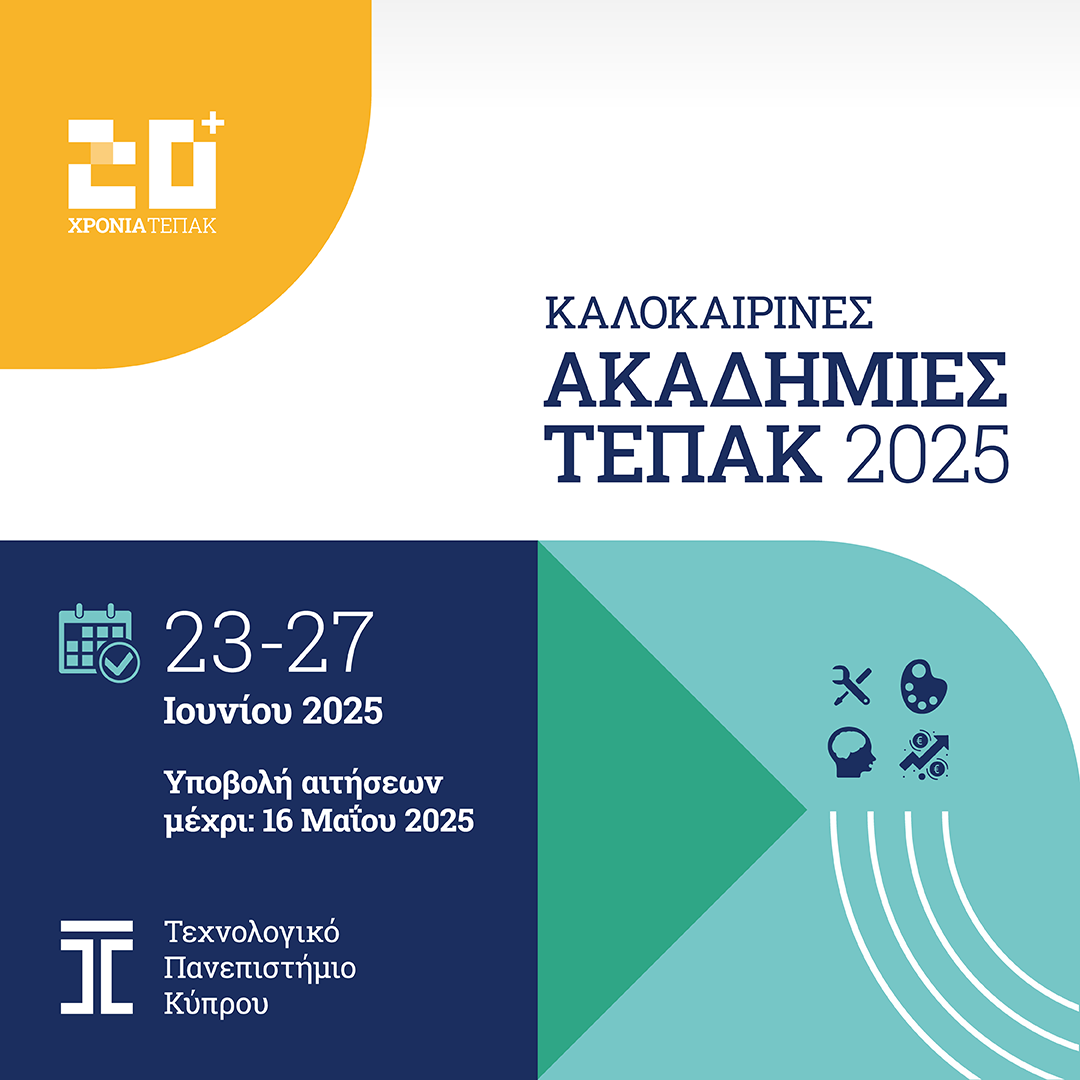 Όλες οι πληροφορίες για τις ακαδημίες και η ηλεκτρονική αίτηση συμμετοχής, υπάρχουν αναρτημένες στην ιστοσελίδα του ΤΕΠΑΚ ΕΔΩ (https://www.cut.ac.cy/studies/admissions/get_to_know_cut/summer_academies)