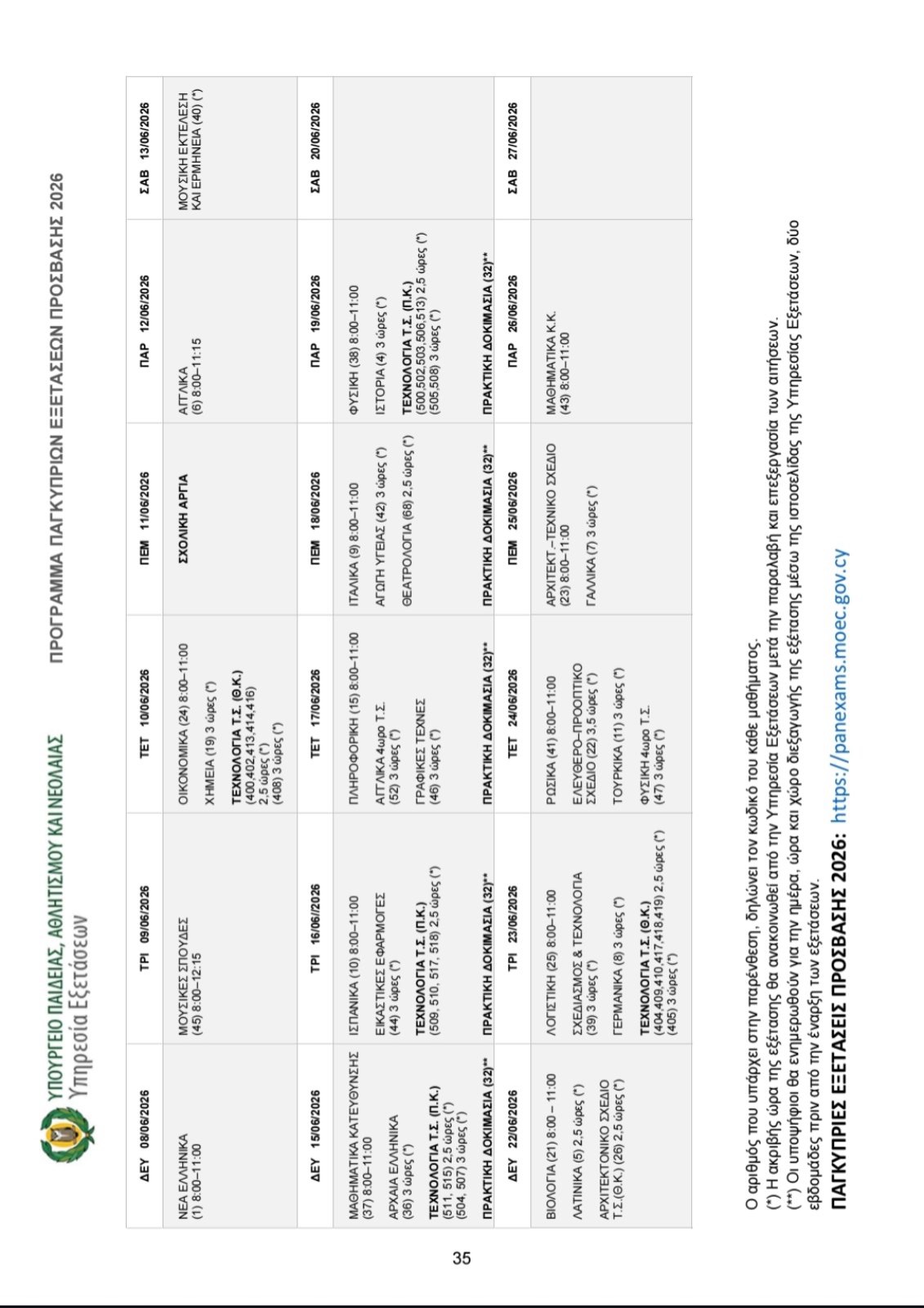 Πρόγραμμα Παγκύπριων Εξετάσεων Πρόσβασης 2026