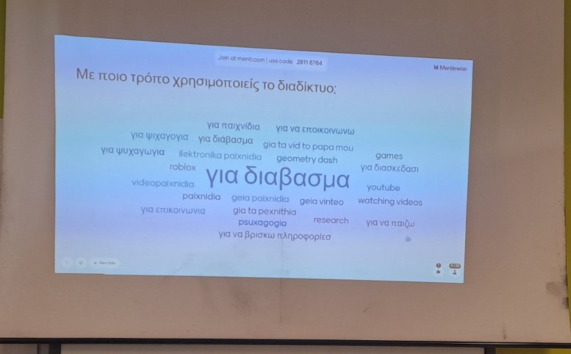 Στις 21 Νοεμβρίου μαθητές/τριες του σχολείου μας παρακολούθησαν σεμινάριο με θέμα: “Ασφάλεια στο Διαδίκτυο”, το οποίο υλοποιήθηκε από τις Λειτουργούς του Παιδαγωγικού Ινστιτούτου, κ. Ιουλιανή Παχίτη και κ. Χριστιάνα Κυπριανίδου.