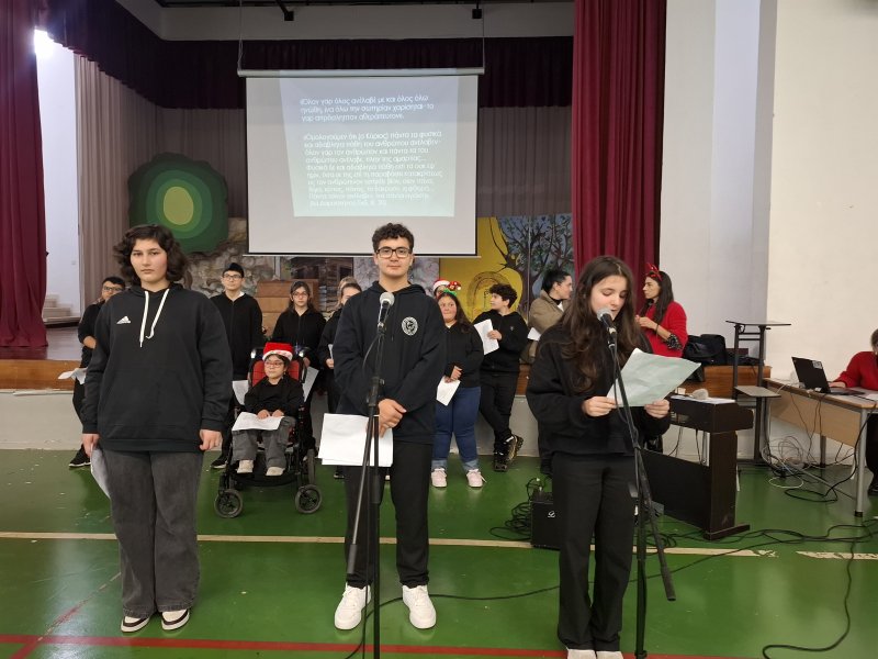 Στις 23 Δεκεμβρίου πραγματοποιήθηκε καλλιτεχνική Χριστουγεννιάτικη Εκδήλωση στο Κλειστό Γυμναστήριο του Σχολείου μας. Το καλλιτεχνικό πρόγραμμα περιελάβανε ύμνους, απαγγελίες, τραγούδια και κλήρωση δώρων.