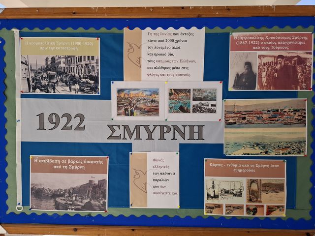 Την Παρασκευή, 12 Σεπτεμβρίου 2025, αναγνώστηκε σε όλες τους μαθητές και μαθήτριες του Σχολείου φυλλάδιο για την Ημέρα Μνήμης της Μικρασιατικής Καταστροφής, που τιμάται την 14η Σεπτεμβρίου. Επιπρόσθετα, οι μαθητές ενημερώθηκαν για τα τραγικά γεγονότα της Μικρασιατικής Καταστροφής και μέσα από φωτογραφικό υλικό που αναρτήθηκε στις πινακίδες του Σχολείου.