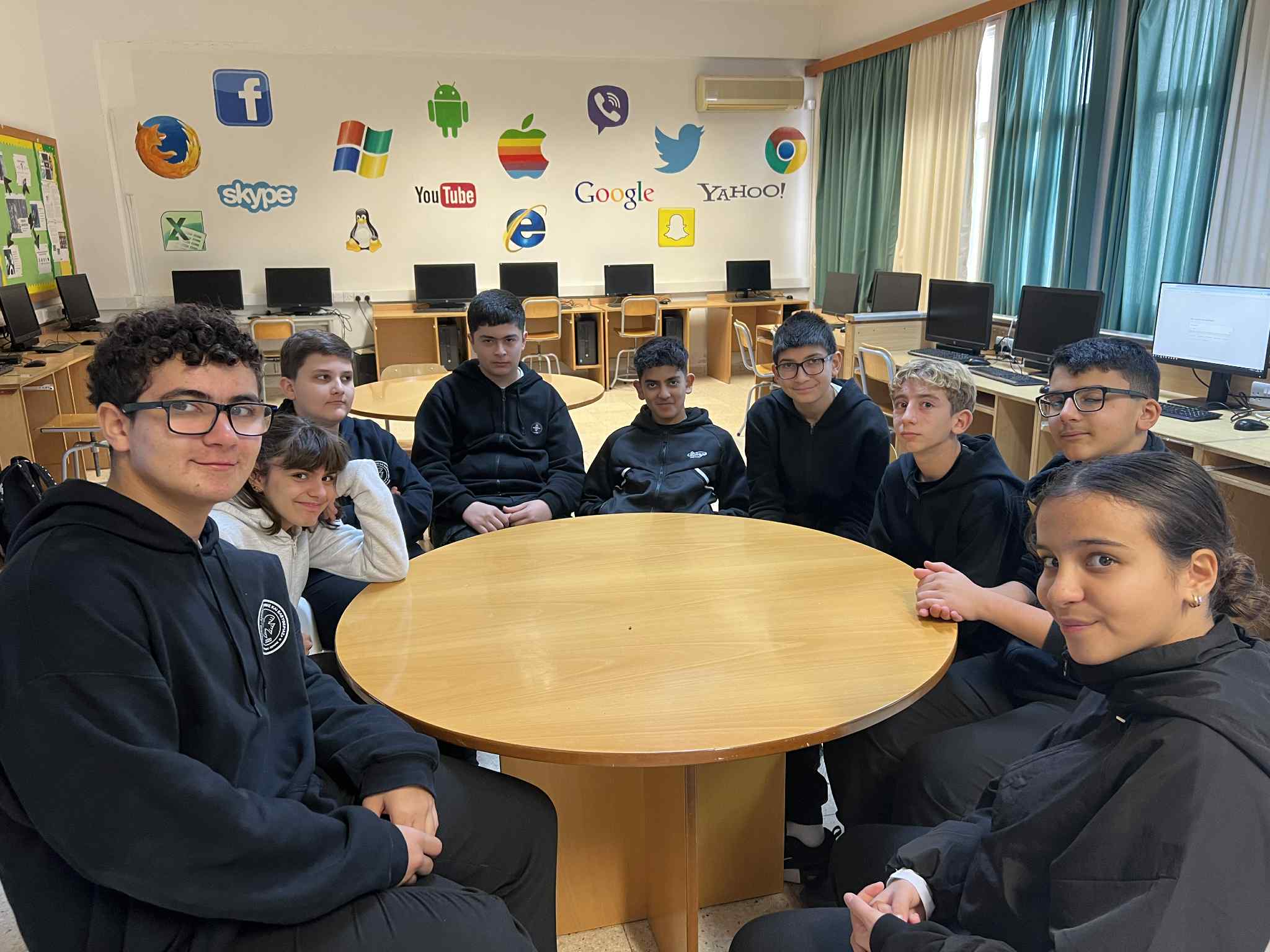 Στο πλαίσιο του προγράμματος «Σχολεία Πρεσβευτές Πολιτισμού – Παιδιά Πρεσβευτές Πολιτισμού», η Μαθητική Πολιτιστική Επιτροπή του Σχολείου μας, υπό την καθοδήγηση του καθηγητή Χημείας Φρίξου Μιχαηλίδη και με τη βοήθεια της Τεχνητής Νοημοσύνης (ΑΙ),δημιούργησαν εικόνες, με περιεχόμενο τα ιστορικά και πολιτιστικά μνημεία της Κύπρου, για την εικονογράφηση γραφικής νουβέλας με θέμα: Ιστορικό/πολιτισμικό ταξίδι στον χωροχρόνο της Κύπρου. Η δράση έγινε στις 23 Δεκεμβρίου 2025 σε εργαστήρι Ηλεκτρονικών Υπολογιστών του Σχολείου μας.