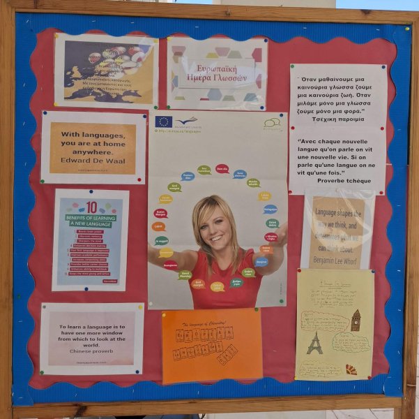 Για την Παγκόσμια Ημέρα Γλωσσών, οι καθηγητές των Γλωσσών φιλοτέχνησαν πινακίδα που τοποθετήθηκε στην κεντρική είσοδο του Σχολείου, καθώς κι ενημερωτικό φυλλάδιο, το οποίο διαβάστηκε σε όλα τα τμήματα για τη μέρα αυτή.