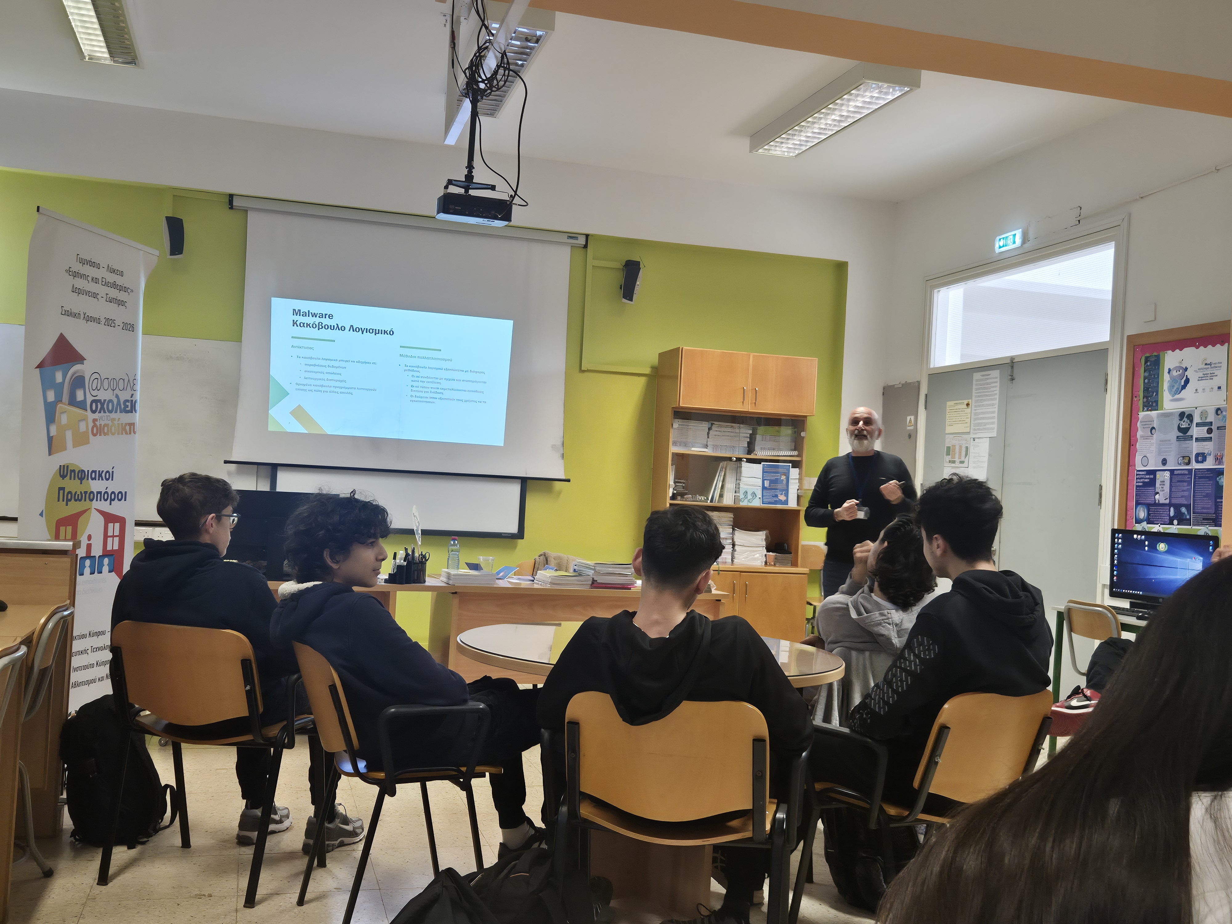 Στις 23 Μαρτίου 2026 οι μαθητές/τριες του τμήματος Δ21, οι οποίοι συμμετέχουν στο πρόγραμμα «Ψηφιακοί πρωτοπόροι», παρακολούθησαν το σεμινάριο με τίτλο «Αποκωδικοποιώντας τις Κυβερνοεπιθέσεις - Οδηγός Επιβίωσης στον Ψηφιακό Κόσμο». Ομιλητής ήταν ο κύριος Τουμαζής Τουμαζή, Λειτουργός Προγραμμάτων του Κυπριακού Συνδέσμου Πληροφορικής.