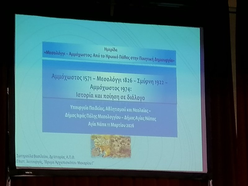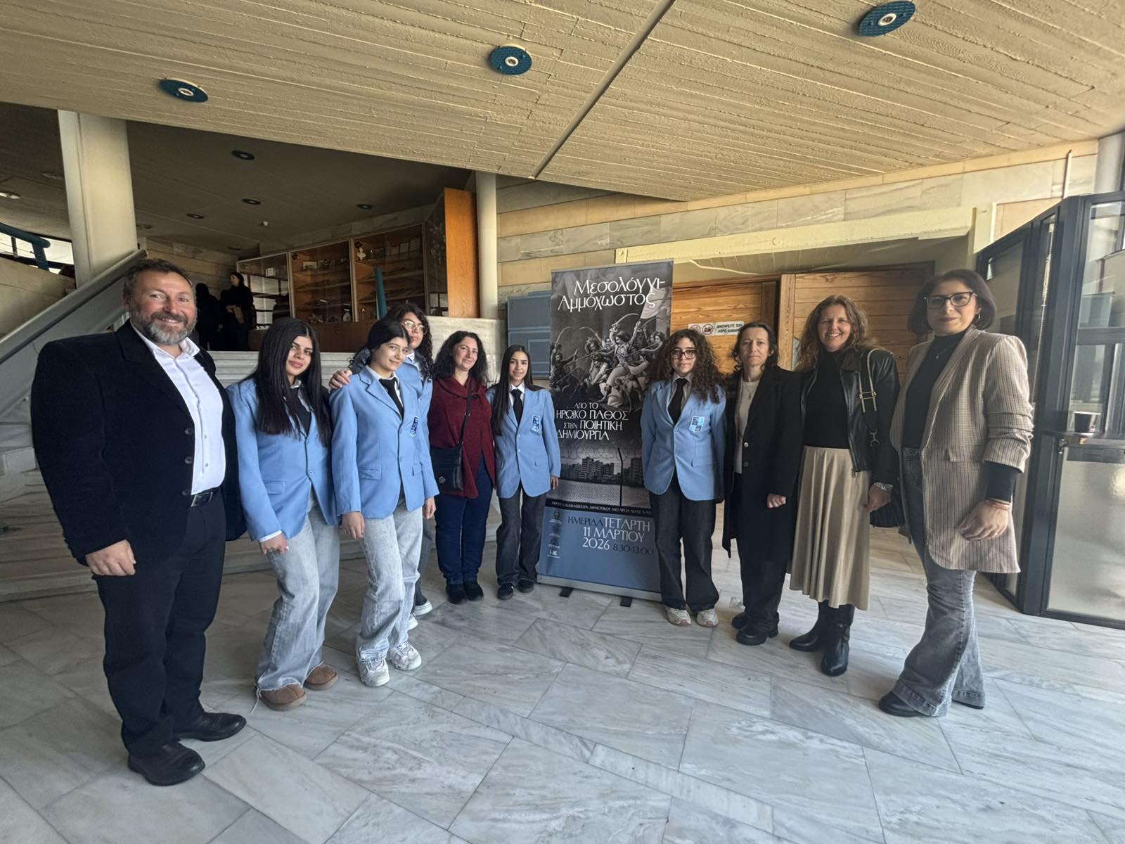 Ομάδα μαθητών/τριών και εκπαιδευτικών του Γυμνασίου Λυκείου « Ειρήνης και Ελευθερίας» Δερύνειας - Σωτήρας παρακολούθησαν την Ημερίδα «Μεσολόγγι -Αμμόχωστος: Από το ηρωικό πάθος στην ποιητική δημιουργία», το οποίο συνδιοργάνωσαν το Υπουργείο Παιδείας, Αθλητισμού και Νεολαίας και ο Δήμος Αγίας Νάπας, στις 11 Μαρτἰου 2026. Στην εν λόγω ημερίδα, παρουσιάστηκαν επιστημονικές εισηγήσεις από καταξιωμένους συναδέλφους και πανεπιστημιακούς, οι οποίοι ανέδειξαν ιστορικές πτυχές και συνδέσεις ανάμεσα σε σημαντικά ιστορικά γεγονότα του Ελληνισμού, όπως την Πολιορκία και Ηρωική έξοδο του Μεσολογγίου, τη μάχη της Αγίας Νάπας του 1821, της Αμμοχώστου του 1571 - Σμύρνης 1826 - Αμμοχώστου 1974. Φωτίζοντας έτσι τον τρόπο με τον οποίο το ηρωικό παρελθόν μετατρέπεται σε πηγή έμπνευσης και δημιουργίας διαχρονικά μέσα από την ποιητική δημιουργία του εθνικού μας ποιητή Διονύσιου Σολωμού. Την εκδήλωση ομόρφυνε το καλλιτεχνικό δρώμενο που παρουσίασαν μαθητές/τριες του Γυμνασίου Παραλιμνίου.