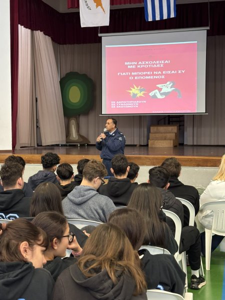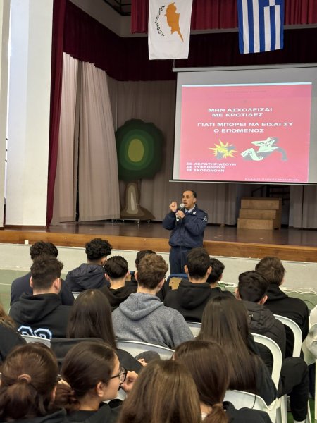 Πραγματοποιήθηκε στις 27 Μαρτίου 2026, διάλεξη για τις κροτίδες από Εκπρόσωπο της Αστυνομικής Διεύθυνσης Αμμοχώστου. Τη διάλεξη παρακολούθησαν όλοι οι μαθητές και μαθήτριες του Σχολείου.